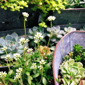セダムモリモリを夏の蒸れ防止の為ザクザク切ったほぼ😂そしたら、中から別のセダムがでてきましたとさ、おしまい。楽しいこともあるもんだ♪春のお手入れ 次の出番待ち💕