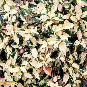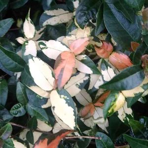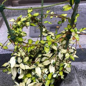 深窓の令嬢😸・・・・ ♂♀ ✩.*˚ 定家カズラ ‘黄金錦’/黄金葛(カズラ)✩.*˚ ついに壁をかけ登り窓からこんにちは ヽ(^0^)ノ 更に上まで伸び横へ伸びてます( ̄▽ ̄;) 新芽は赤や橙色で黄金色の葉とのコントラストがとても綺麗でいつも惚れ惚れしてます、晩冬の紅葉も (♥ω♥*)キュンキュン♡*゜ 緑葉に良く日光に当てる事で黄金色の斑が入る(↖️で陽当たりでその色の違いわかるかと) 常緑蔓性低木(耐寒性) 科名 キョウチクトウ科 属名 テイカカズラ属 学名 Trachelospermum asiaticum 'Ogon Nishiki' ■ 呼び名 : 定家カズラ ‘黄金錦’、黄金葛、黄金テイカカズラ、テイカカズラ、ゴールデンサン 原産地 日本、朝鮮半島 黄金カズラはテイカカズラの斑入りの種で蔓性低木の多年草です。 日当たり半日程度の陽射しが必要 強健で耐寒性と耐暑性あり 常緑で越冬 蔓性なので同じキョウチクトウ科の初雪カズラの様につかえます。 お花はネットで1枚しか見かけませんでしたΣ੧(❛□❛✿) 滅多に見られない、初雪カズラも咲いてくれたので、こちらも咲いてくれたら嬉しいな〜💖 調べてたら ポトスの和名も 「黄金カズラ」( ̄▽ ̄;)