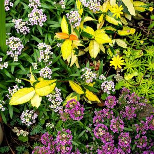 こぼれ種から育ったスイートアリッサムが、花壇で綺麗に咲いています。😃✨ あら、ルビーネックレスのお花もちゃっかり写っていましたね。😄🎶 頑張ろう❗日本‼️ 👊✨