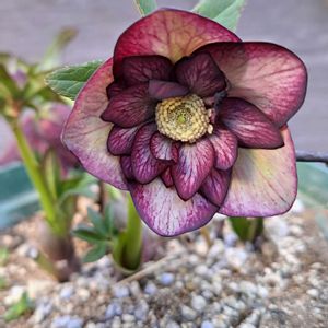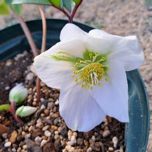 自家交配のクリスマスローズの初開花するかな 1枚目は、外側ベインがくどい花が咲きそう 2枚目は、母親クレオパトラなんだけど似ていない気がする 3枚目は、札落ちで交配がわからない
