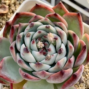 こんばんは~ 久しぶりの投稿です😊 放ったらかし~の多肉たちに 花芽がたくさん出てきてました🤭 4枚めの桃太郎の花芽はこの後 --✄--カットしました