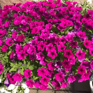真夏の日差しもなんのその❣️ 小さなプランターに 4色の🌼🌸元気いっぱい咲いてます🎵