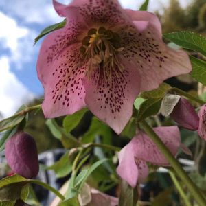 おはようございます♡ クリスマスローズの花 お辞儀してるみたいです(✿︎´ ꒳ ` )♡︎ 青空に向かって〜 今日も1日頑張ります❣️