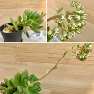 おはようございます〜😊 春萌の小さな白い花🌸が咲きそうです♪ こんな姿で踏ん張ってます(゚∇^*)アチャ~ 花が咲いたら親株も一緒に--✄--して 仕立て直しします (=v=)ムフフ♪