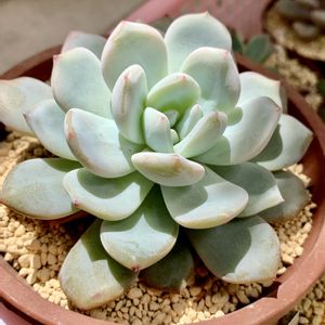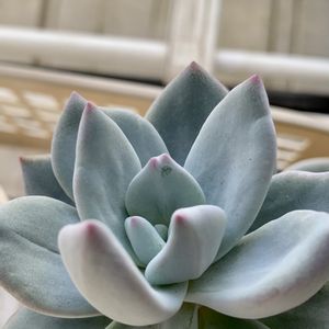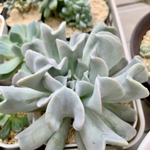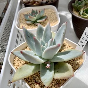 こんにちは〜😊 葉挿しで成長した月美人を 植え替えました~🤭 いい感じで付いてたお粉が💦 これ系の植え替えは難し~い (:D)┼─┤バタッ