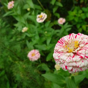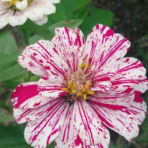 百日草ポップアートホワイト&レッド咲きました💠 ペパーミントスティックは何処へ (゜Д゜≡゜Д゜)?