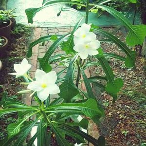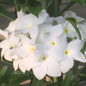 プルメリアプディカ 葉っぱが矢尻状で、 固まって咲くので 別名 ブライダルブーケと言うそうです。 可愛いですよね😍 2年前の画像です。