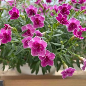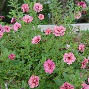 やっと‼️松原園芸さんの八重咲きカリブラコア ティエルノダブルが咲き揃ってきました😆 去年の挿し芽っ子を梅雨前に10号鉢に3株植え。挿し芽の成功率高いので今年も挿し芽で冬越しさせたい⭐️