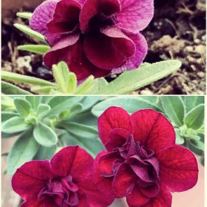 八重咲き カリブラコア❤️ 上は 3月に購入したカリブラコア✨ ずーと 今でも咲いてるよ‼️ 下が 何回も花摘みして切り戻して又 咲いてるの‼️ 長雨の春は 避難させ この前の長雨は 放置したけど その後 秋晴れでカラッとしてるから 大丈夫だったよーーƪ(˘⌣˘)ʃ