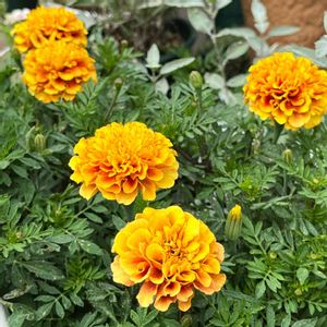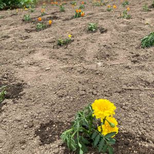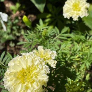 今日のお花マリーゴールド、種蒔きから育っています🌱✨ 右のフレンチマリーゴールド2つは畑でコンパニオンプランツに、左のアフリカンマリーゴールドは観賞用に…🤗