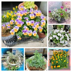 先日のコラージュ投稿1枚ずつ編 暑いですね~🥵 エアコンも冷えにくいです ①PWユーフォルビアダイヤモンドフロスト♡2年生 私の部屋で冬越し⛄➰🌸 非耐寒性なのでどうなるか…でしたが、6月以降グングン伸びて🌿咲いてくれました🤍🤗もっとフワーッと広がって咲くと理想形ですが…寒冷地&ピンチ✂️好きの私😅と言うことで◎ ②種から育てたマリーゴールド コンパニオンプランツとして🌿 「トーホク」さんの種♡フレンチ形サファリイエローとオレンジ各1袋ずつ💛🧡 とても発芽率が良く、その後の育ちも順調で約90ポット出来ました🤗お裾分けして残りは60ポット✨野菜畑には植えたけど、花壇にはまだ💦植えないと🧤💦 ③④⑤番外編…かな 今年はまだ咲いています😅 ③ビオラ上山七福神 この3色咲きが可愛くて♡これで1ポット🧡葉や茎もがっしりして強かったです💪リピートしたい🤗 ④ビオラエボルベFrom宮崎 やっぱり特別なビオラです✨ 葉や茎が丈夫なのはもちろん、茎のしなりが(曲線的)他のビオラとは違いますね~💎 こんなに少なくなっても、各々の茎がウェーブして自立しているんです✨👀お花の咲き方もダイナミックで花びらが全体的に波打ってウェーブして🌊 今年の秋もお迎えしたいです🤗 ⑤フリル咲き小輪パンジー ペルクレア 花日和 すぐに名前を忘れちゃう💦 咲くまで時間を要した子です。(個体の問題かもです)なんだか、6月以降の方がモフモフに♡ 花日和さんのだけに、葉茎はしっかりしています💪 ビオラは、やっぱり株元近くの葉を綺麗にしてあげていると虫も発生せず、付かず、綺麗に長持ちする気がします。 暑い1日お疲れさまでした🍹🧊 おやすみなさいませ😴