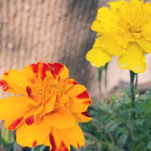 フレンチマリーゴールド ( 千寿菊属 ) ☔雨で湿った気分はカラットとした💠で キーリカエテネ! 誰もがお日様、まちどおし~