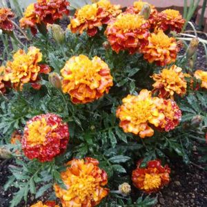 《フレンチマリーゴールド》 我が家の花壇にフレンチマリーゴールドが咲いています✨ マリーゴールドは、鮮やかな黄色やオレンジ色の花を長期に次々と咲かせます💛🧡 栽培も容易で、夏の花壇の定番とも言えるでしょう☺️❣️ *草丈が低く枝分かれの多いフレンチマリーゴールドは、花壇の縁取り・コンテナ植え・寄せ植えと大活躍ですね😊💕