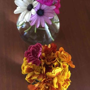 花をいけました マリーゴールドとオステオスペルマムとセキチクです😊👍