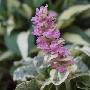 斑入り葉にピンクのお花の可愛いアジュガです。