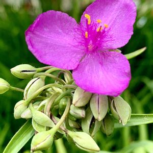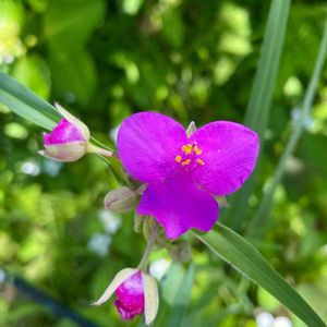 今日のお花 ⚛ムラサキツユクサ⚛ ツユクサ科ムラサキツユクサ属の多年草 英名「spiderwort、Oyster plant」 和名「ムラサキツユクサ(紫露草)」 別名「ホタルグサ(蛍草)」 花言葉「ひとときの幸せ」「快活」「束の間」 「尊敬しているが恋愛ではない」「短命」 人気の投稿に入りました 7月23日 ありがとうございます 🙇♂️🥰 小庭にて 6月撮影