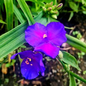 🏷美しく青きドヨウ 今朝のムラサキツユクサ四兄弟です♪ ちょっとギュウギュウ💦