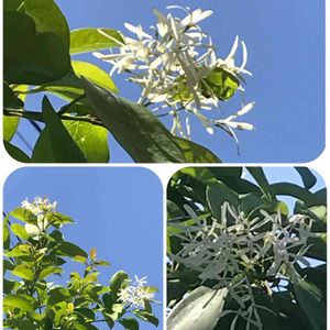 なんじゃもんじゃのお花が咲き始めました😃❣️ 昨年切り詰め過ぎたのか今年は花数が少なそう😞 数年前にあしかがフラワーパークで購入した苗木です🌳🎶 成長が早いです😳 高い所に咲いているので…撮るのが大変🤳📱💦 繊細で可憐なお花、大好きです❤️ 真っ白になる程咲いて欲しいです🤗💕
