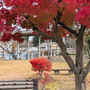 銀行の駐車場近くの公園🤫 1️⃣2️⃣すてきに色づいた紅葉が見られるとは思わなかった👀 3️⃣クリスマスツリーも🌲😍 夜はイルミネーションになるみたいなのでいつかみに行けたらいいなぁ💕