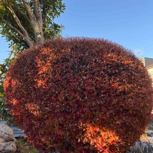 屋上庭園のお花さん🍁❣️ 紅葉したドウダンツツジを 覆いつくすワイヤープランツ🍁☘️ 白い小花を沢山付けていますので ズームしてご覧になってくださいね😳🎵
