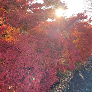 街路樹 真っ赤だな🍁 いつもは車で通る道まで散歩して🚶♀️📷
