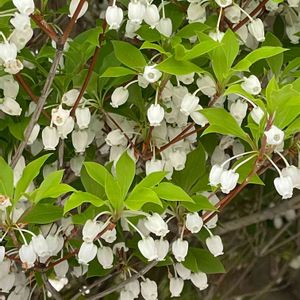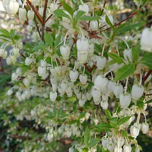 ドウダンツツジに花がビッシリついています。我が家のはこんなにたくさんついていません。