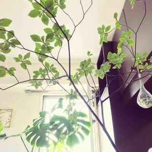 繊細な枝に、囲まれた生花です。 ちなみに、枝は、半月以上居ます。 日毎、生花が、迎えられ、生花を際立てています。