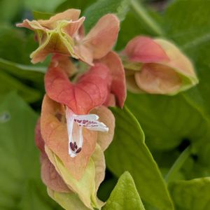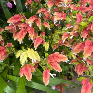 コエビソウ (キツネノマゴ科) 別名 ベロペロネ 原産地 メキシコ🇲🇽 エビの尾のように重なり合った赤褐色や黄褐色の「苞(ほう)」が小エビに見えることから この名前が🦐 苞の間から顔を覗かせている白い唇形をした小さな花が 本当の花です。 今月上旬 小田原にて撮影📷
