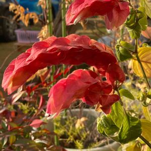 《このピンク色の海老みたいな花🌸》 メキシコ原産のキツネノマゴ科の植物🌸 日本では道ばたの雑草としてごく普通なキツネノマゴと同属🤗🌸 名前の由来は、花のつく穂が苞に覆われていて、その形が「小海老の尻尾」に似ていることによる🤗 花はその苞の間から顔を出す。 「君の名は」