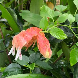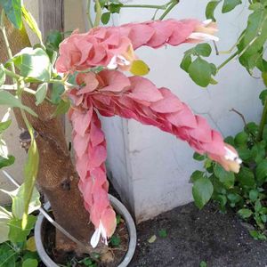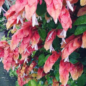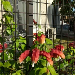 おはようございます😃 近くの団地のフェンスに絡むように大きく育ったコエビソウです。 毎年この場所で咲きます。 よく見ると、茎は木のようです。 調べると、低木らしいです。🤔 草の名前が付いているので、多年草かと思いました。 それでも、キツネノマゴの仲間だそうです。 印象深く、覚えやすい名前ですが、別名のベロペロネも何となく楽しい名前です。😁
