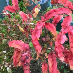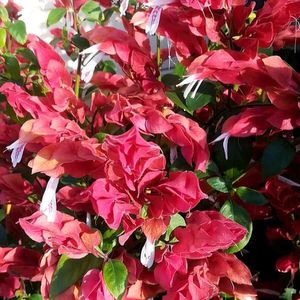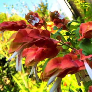 こちらの植物の名前がわかる方、教えてください! 赤い部分は花ではないようで、隠れるように咲いている白っぽい細いものが花のようで、地面にも沢山落ちていまきた。 よろしくお願い致します。