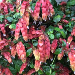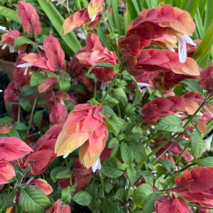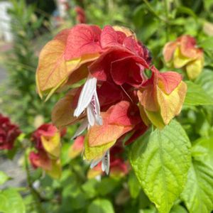 美味しそうか小海老だこと👀🦐 メディアフラワーミュージアムで。 🦐コエビソウ🦐 キツネノマゴ科 キツネノマゴ属 原産地: メキシコ 別名: ベロペロネ、オウムソウ 花は白色の筒状の部分です。 道端に咲いているキツネノマゴと同属です。 熱帯植物ですが、寒さにも比較的強く関東地方南部では戸外でも冬越しします。
