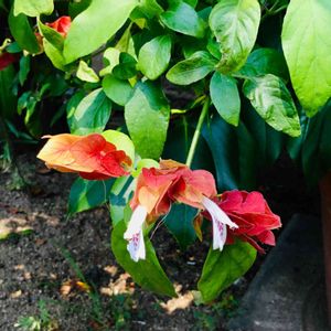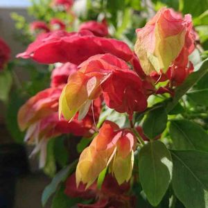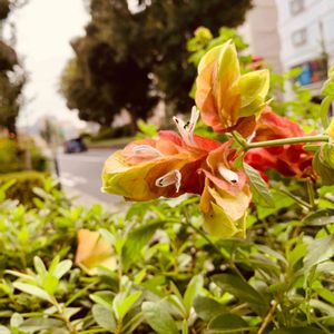 散歩中に見かける花🌼 赤い部分が葉なのか花なのかよく分からないけれど、秋っぽくて綺麗❣️