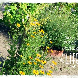 🌿ここのエリアは🌿南側 水遣りなしでも頑張ってるお花🌼だよ 一株が種が飛んで5年目 広がってきました💜💛💜 お隣さんから頂いたルドベキア✨