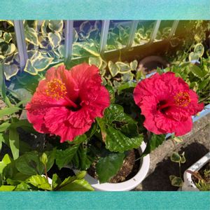やっと今日、もう1つのハイビスカスが咲いてくれました〜!1つ目のよりもつぼみが大きくて上を向いてるからオールド系のかな?って思ったらすごく可愛い子が2つも!!可愛い〜🌺✨ この子、葉っぱが枯れたりしてたから大丈夫かな?って思ってたけど無事に咲いてくれて良かった😫 今日は天気も良いし、とってもいい日になりました💖