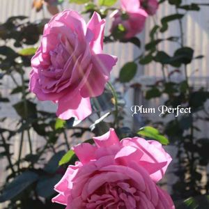 プラムパーフェクト 2回目投稿のプラムパーフェクトさん💜 今度は房で咲いてくれたところです🥰 真っ直ぐ姿勢良く伸びて、キリッとしたお顔が美しくて✨✨ わりと房で咲くところも、嬉しいです😊 🏷毎日ローズショー 参加させて頂きます🙇♀️