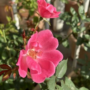 朝陽溢れる今朝のベランダから😊 咲き始めのイントゥリーグ(pic1)とまだまだ蕾のピンクノックアウト(pic2 )🩷 そろそろ冬バラも終わりかなと思うけど、あちこち蕾も顔を出しています。切り花にしてお家に入れようか思案中です🥰