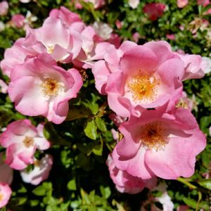 バラ No.31 ピンクノックアウト Pink Knock Out アメリカ 2004年 Conard-Pyle Fフロリバンダ ノックアウトの枝変わり 四季咲き 中輪 微香 ピンク 半八重平咲き 耐病性強 強健種 育てやすい 大株にならない 花付きが良い
