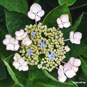 梅雨入りしました☔🐸 湿度が高くなると不快で嫌ですね😖 庭の紫陽花たちにとっては恵みの雨☔かな? ①地植え古株のブルー🩵手毬咲きの紫陽花。水色からだんだん濃くなってきました。 一昨年強剪定したら昨年は咲いてくれず寂しかったです😢 この隣にあるガクアジサイは今年も咲きませんでした😅 さすがに切りすぎたのかな𓏧💦 ②③何年か前に義父が地植えにして行った紫陽花。同じ場所に植えてるので混ざって咲いてます🤣 この子たちも✂️して去年は咲きませんでした🙂↔️ ④ダンスパーティ 枝がくねくねと曲がりやすい💦 主人の実家から✂️してきて挿した子 ⑤一昨年実家から✂️してきて挿し木した子。ヤマアジサイかな? 茎の細い華奢な子 ダンスパーティしか名前が分からないという(* ᐕ)?