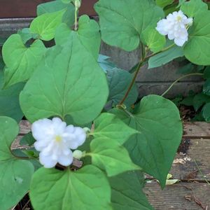 去年GSで見て欲しいなぁと思っていたら、叔母の家の庭にあるからともってきてくれた🌱八重のドクダミ 普通のドクダミの側に植えると消滅すると聞いて、まだ鉢で楽しんでます😊