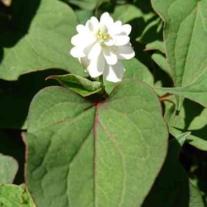 八重咲きのドクダミ。 山歩きでみつけました。普通のドクダミと一緒に群生していました。 我が家にも勝手に増えて困っているドクダミですが、こんな可愛いのなら嬉しいのにな💕