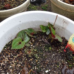 昨年頂いて植えていた八重のドクダミ。冬場は根だけになってたのが、新しい葉が出てきました。水やっててよかったです。