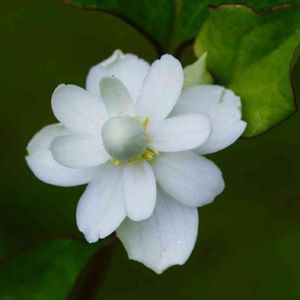小さな庭に、いつのまにか花を咲かせた八重ドクダミです。