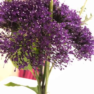 お花屋さんで買いました。花の名に霧という漢字が含まれていました。すらっと伸びたふわふわした大きな紫色の花で葉はありません。