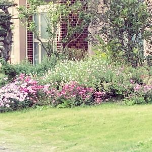 散歩道にあるお庭 綺麗な花が咲いていますが 誰も住んで居ない空き家 見るたびにお手入れを したくなるのを我慢してます(笑)