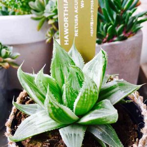 今日はハオルチア「レツーサ アクミネイタ ホワイト ゴースト」です。 時期によってなのか?管理がイマイチなのか?葉がペラペラの時がありましたが、今は肉厚で元気そのもの!花芽が20㎝ぐらいに伸びてもうすぐ花が咲きます。オブツーサ系と掛けたら面白そうですね。 (*^^*)