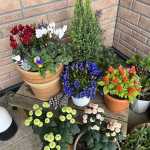1⃣チェッカーベリーとシクラメンジックス 2️⃣シクラメンフェアリーピコとシエルブリエ 3️⃣クラリンドウ🤍 まだ咲いてます🎵𓈒𓏸 4️⃣金魚草トゥイ二ー 咲き始めました🎵𓈒𓏸 5️⃣プルメリア 最後の1つのお花です🎵𓈒𓏸