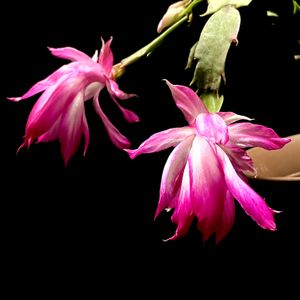 Schlumbergera orssichiana シュルンベルゲラ オルシチアナ まだ7分咲きくらいですが、満開を待たずにパシャリ📷✨ ブラジル産のシャコバサボテンの原種です 四季咲き性が強く、夏場もバンバン蕾をつけますがなかなか暑がるので 涼しく…というか寒くなってからしか咲きません😅 #schlumbergera #orssichiana #schlumbergeraorssichiana #シャコバサボテン #原種シャコバサボテン #デンマークカクタス #森林性サボテン #リプサリス #月下美人 #エピフィルム #クジャクサボテン