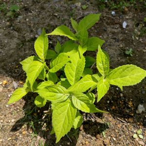山紫陽花、伊予獅子手毬。去年お迎えしてあんまり咲かなくて、植えた事すら忘れてました。 復活してくれたみたいです。 カラーリ−フみたいで葉が凄く綺麗です。 お花は小さくてピンクがかった白でした。楽しみです✨😊
