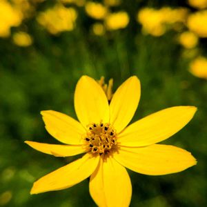 糸葉春車菊(イトバハルシャギク)💛 雷雨に当たって茶色になる前に❗️ この花は近くで見るより、ちょっと離れて見たほうが雰囲気があるように感じます🙄